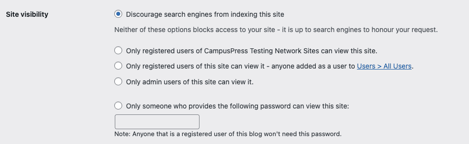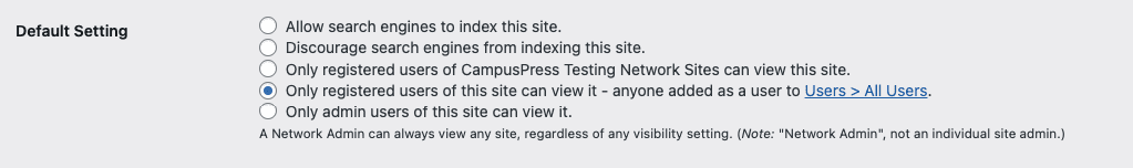 Site visibility controls the visibility settings on all sites across your CampusPress network.