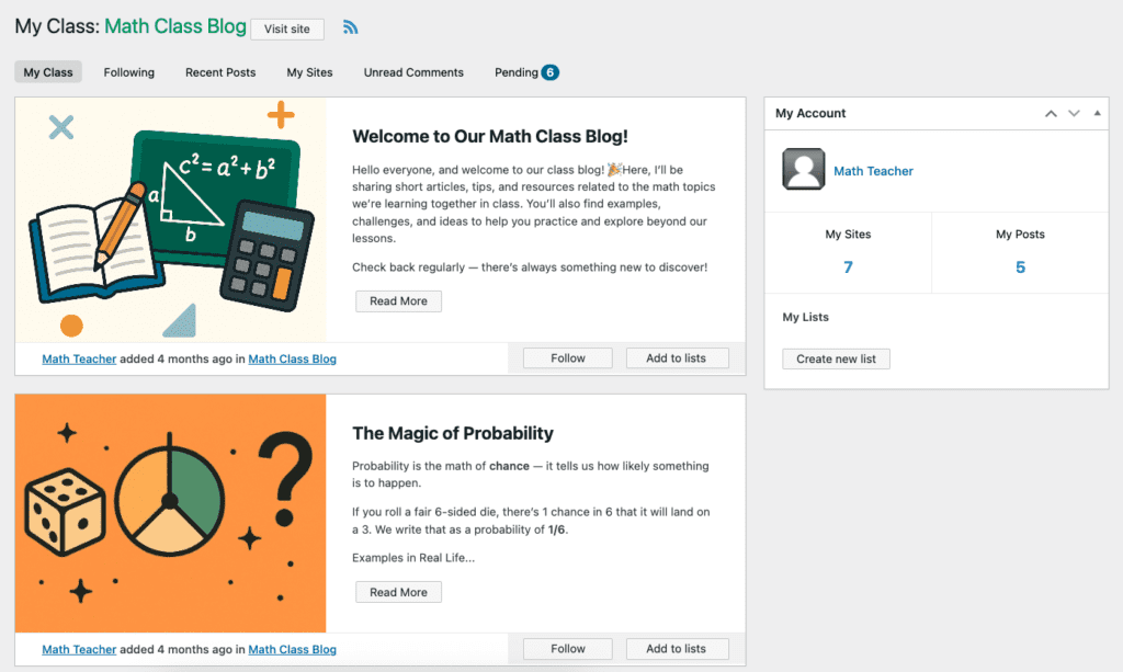 CampusPress includes a student management and social networking feature which means you can create a class for your students and allocate work to students within that class, as well as providing feedback, responding to comments and more.