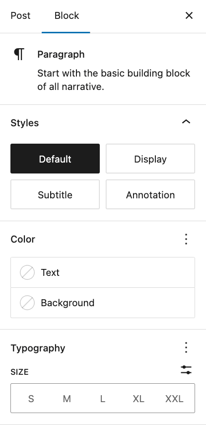 Select the text you want to adjust. In the block settings sidebar, open the Typography section and choose a Size that ensures readability on both mobile and desktop screens: